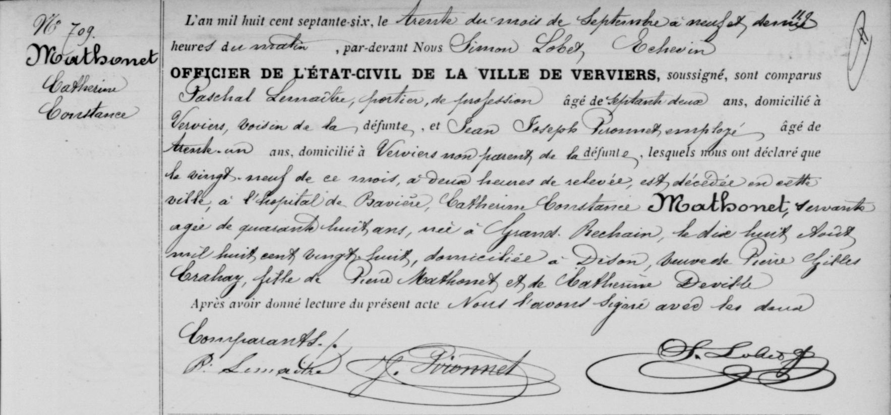 Les actes de naissance, de mariage et de décès, écrits à valeur juridique, constituent les documents de référence pour les recherches généalogiques à partir de 1796.