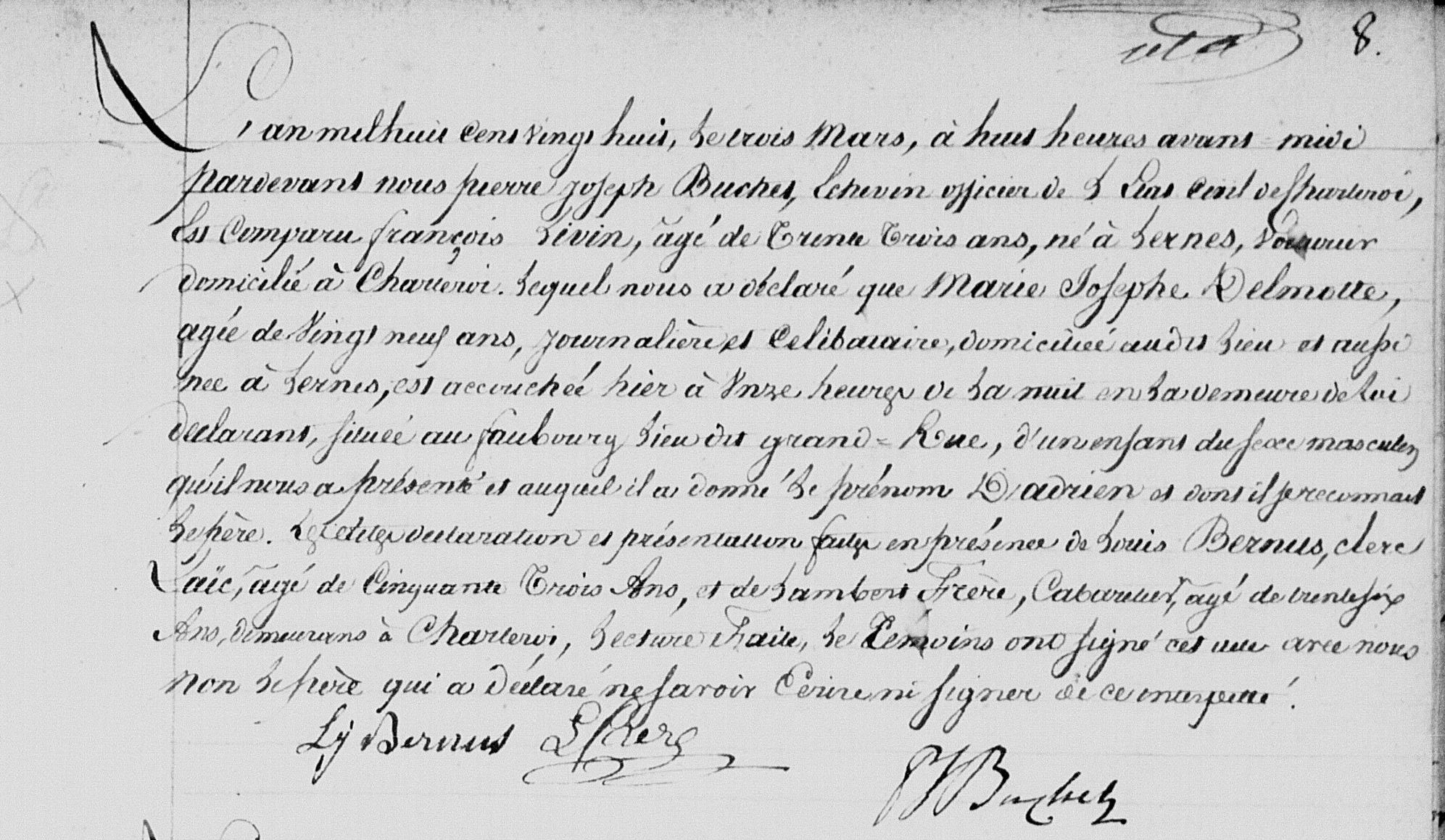 Les actes de naissance, de mariage et de décès, écrits à valeur juridique, constituent les documents de référence pour les recherches généalogiques à partir de 1796.